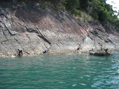 While we were circling about the fishing spots, we came across this scene. 4 women engaging in extremely dangerous work. According to Z, they were lookning for oysters/clams which are stuck at the side of each mossy island. A wrong slip and they would end up in the waters below and lord knows what lies under the waters - rocks with sharp ages? Jellyfishes (we saw a few in the bay)? Predator fishes (we saw a baby shark at one of the fishing spots!)? It's amazing how some of us have it so comfortable in life, while there are others eking out a living like this.
